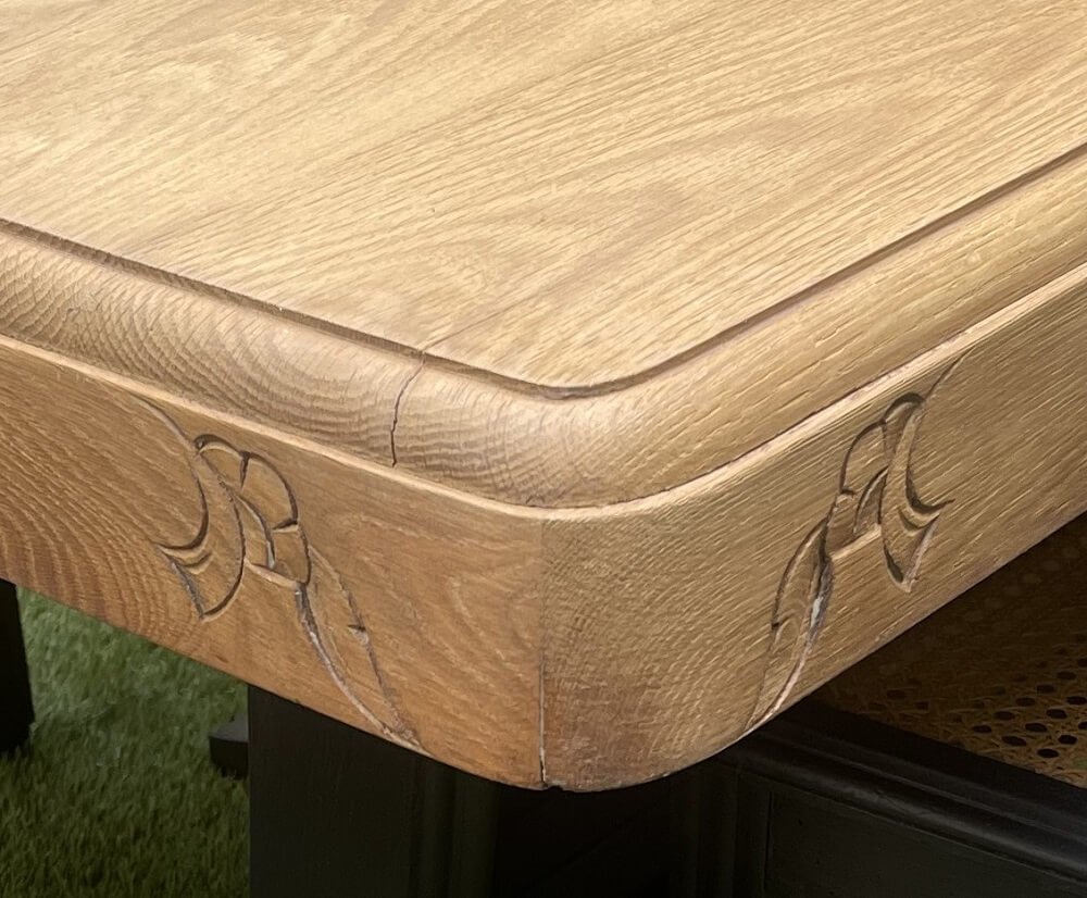 Les motifs sculptés aux quatre coins de cette table nous font penser, déjà, aux motifs art nouveau. Mais un coup d’œil au dossier des six chaises conforte aussitôt, sans le moindre doute, ce diagnostic ! Les sculptures de feuilles et de fleurs ne trompent pas !